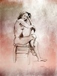 snel-schetsen naar levend naaktmodel, digitaal bewerkt en geprint op canvas